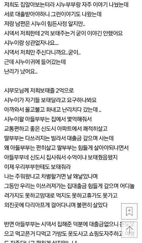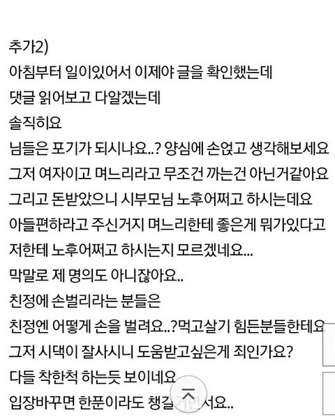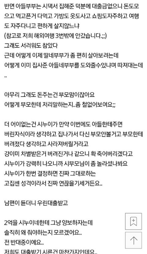 이건 가난의 문제가 아님ㅡㅡ;;; 욕심의 문제임 돈 있는집 애들은 안그럴 것 같음? 우리집 동서는 자기네 부모는 더 좋은차로 바꾸고 더 좋은 동네에 살고 더 큰 병원 있고 부모님 이번에 어디로 여행 간다고 은근 비교하고 자랑 하면서 돈 필요 할 땐 지 부모한테는 손 안벌리고 꼭 시댁에서 돈 받음.
