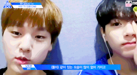 귀여운 04즈 케미를 보여 주는 남도현 연습생과 이진우 연습생 애기 같은 얼굴을 하고 카메라 앞에서 조잘조잘 말을 하는데요... (04즈 둘이 같이 있는 모습을 못 보여 줬다면서 셀프캠을 찍어 줌)(귀여워)