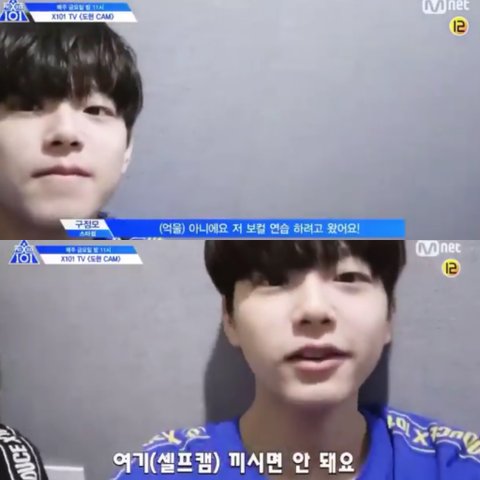바로 바로 셀프캠을 찾아온 구정모 연습생... 그러나 자신은 우연히 보컬 연습을 하러 온 것이라고 해명함...... (진실일까요?) 귀여운 진우 군이 끼시면 안 된다고 훠이훠이 종이인형을 내보내려 합니다