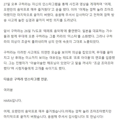 구하라 방송사고 후 첫 심경 고백