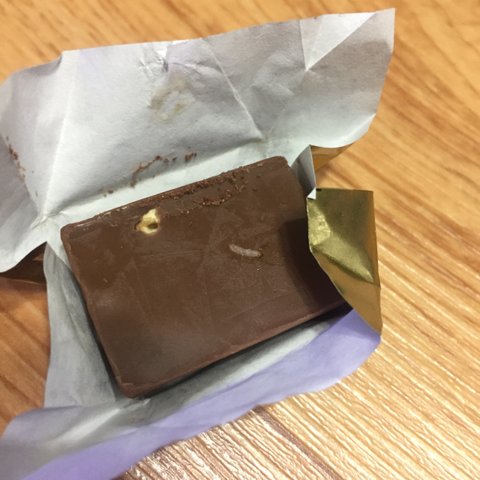엄마가 어디서 허x(x쉬)초콜릿 작은거 갖고왔길래 먹으려고 뜯었더니 애벌레가 있네요;;;;;;