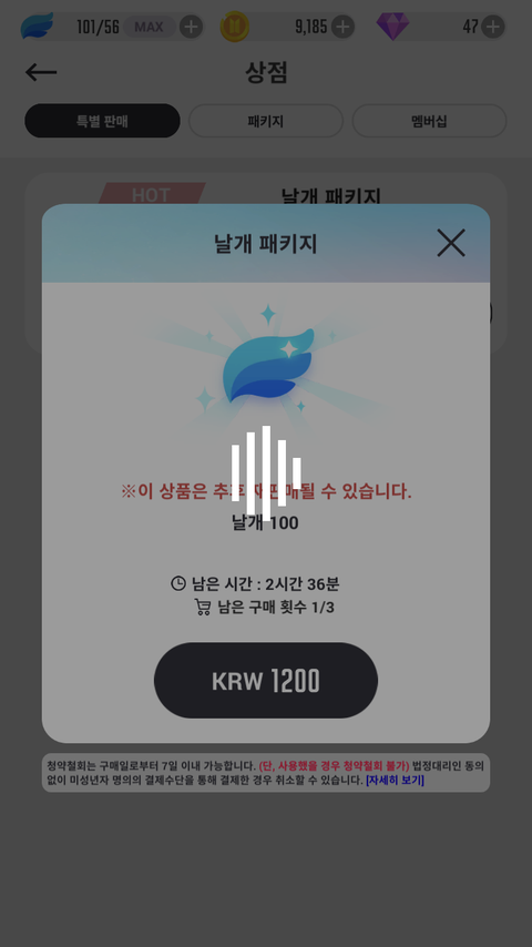 날개 100개 주는 결제 있자나 1200원 짜리