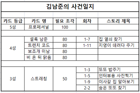 제작 카드는 애들마다 각각