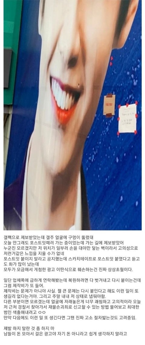 누가 이진혁 홍대 광고에 구멍 뚫어놓음