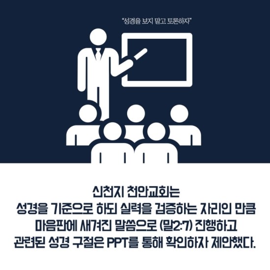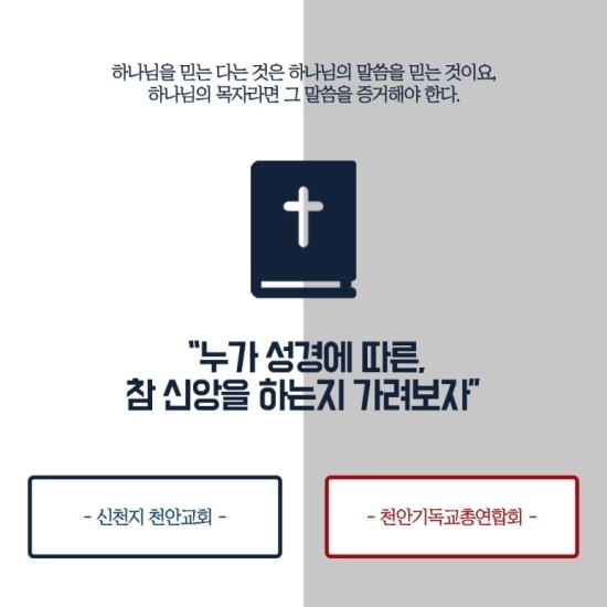 신천지 천안교회는 “성경말씀을 중심으로 한 주제로 성경에 입각한 설교를 해