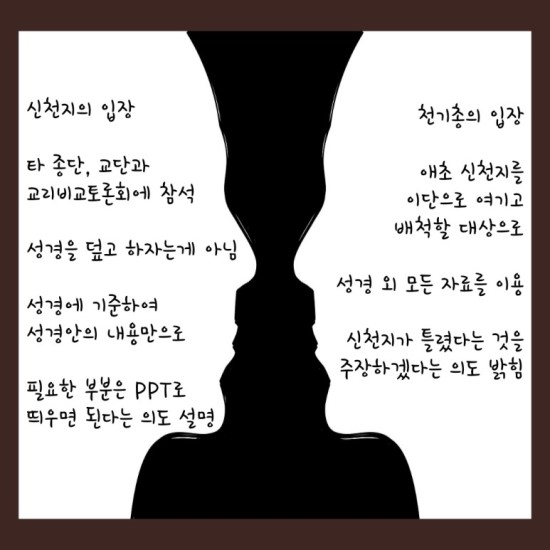 천기총 “성경 외 자료를 준비해서 신천지에서 설교하는 내용에 대해 반증하겠다”는 주장.