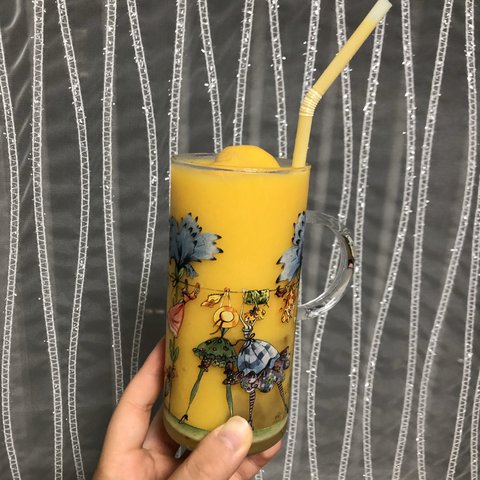 이건 냉동망고로 삘받아서 만든 망고스무디에용 가는데 애먹었지만 비싼맛 나서 뿌듯 했던 ..!!