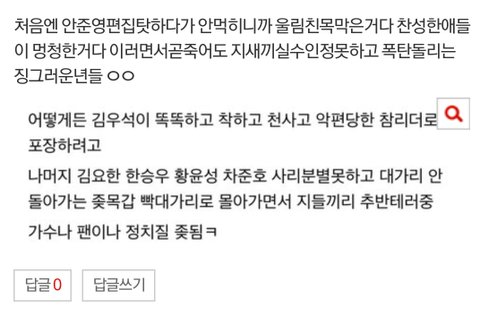 김우석 발언 쉴드치겠다고 여론몰이 정치질 하고다니네 어휴 그래서 톡선이 저꼴이냐...