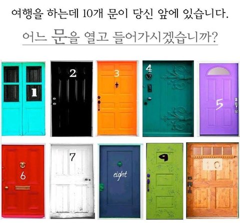 여행을 하는데 10개 문이 당신앞에 있습니다.