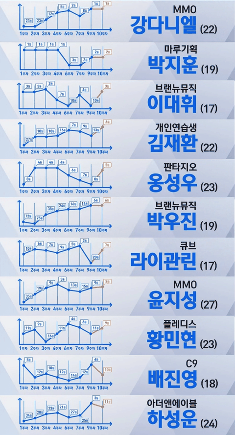 지훈이 3위 아래로 내려간적이 없거든 ㅋㅋㅋ 원픽은 아니지만 진짜 대단함