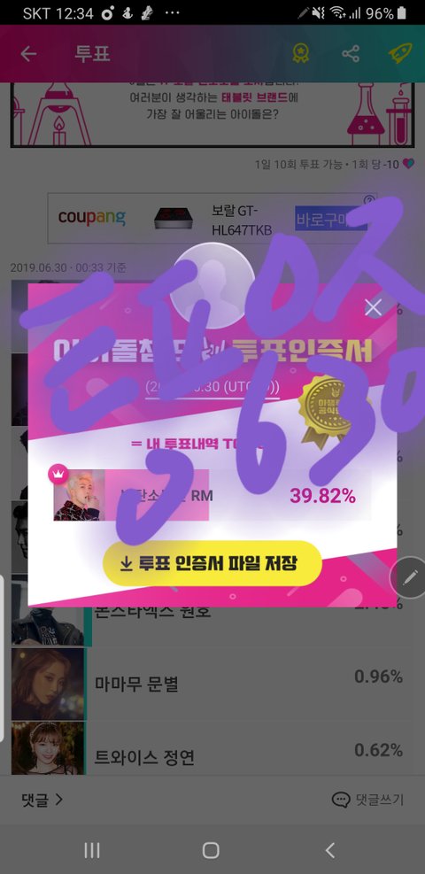 둘다 2위더라구 매일 아챔어플들어가면 쌓이는 포인트로 투표했당