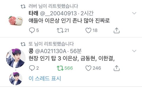 우리은상이 현장인기 젤많대ㅠㅠㅠㅠㅠㅠ능금단 좋아죽어요