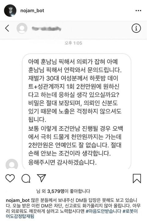 여자들도 저런ㄱㅓ 엄청받는데 나도 20대 일반인인데 저런디엠 받은적 있음 기분드러움 발정난 노친네들
