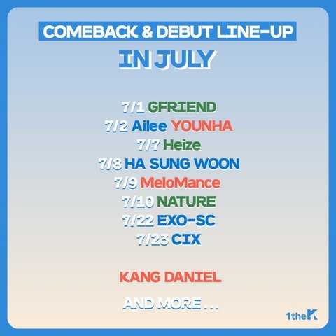 https://twitter.com/1theK/status/1145210355968180224 원더케이공계 7월 컴백&데뷔라인업 떴어 강다니엘❤ 어쩜 이름도 KANG DANIEL 이야...ㅠㅠㅠㅠㅠ