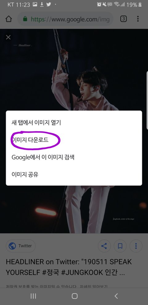 트위터 페이지일 경우 들어가면 그냥 그 계정 페이지로 들어가게되므로 저 상태 저기서 꾹 눌러서 이미지 저장하는게 편함