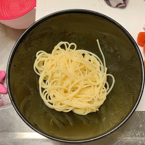 삶아진 파스타는 찬물에 잘 씻어 올리브 오일을 조금떨어트리고 달라붙지 않게 둔다. 올리브 오일은 취향것 넣어도 된다. 다만, 나는 느끼한 것이 싫어 조금만.