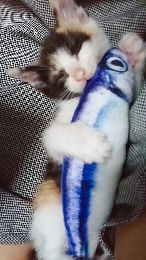 청어? 고등어? 암튼 생선 인형을 사줬더니 저렇게 물고빨고 좋아라 한다. 귀여워...