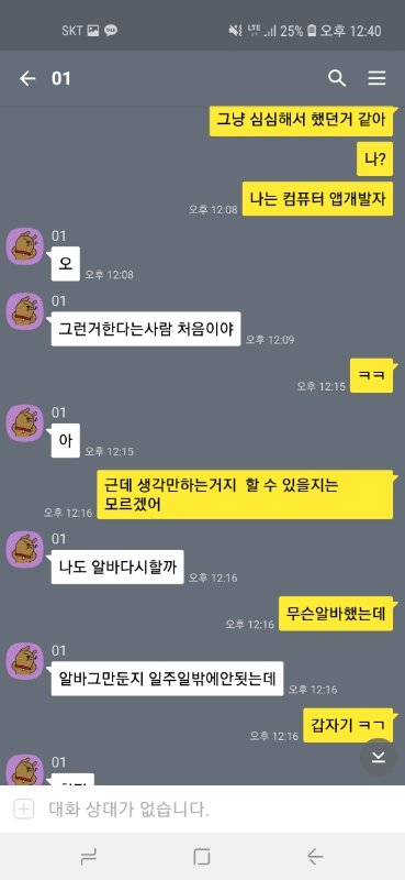 보통 오 특이하다! 횟집알바 하는사람 처음봐~ 요리했었어? 회 무겁지않아? 이런 사족만 있었어도 대화를 이어가겠는데 자꾸 대화 끊는 느낌임.