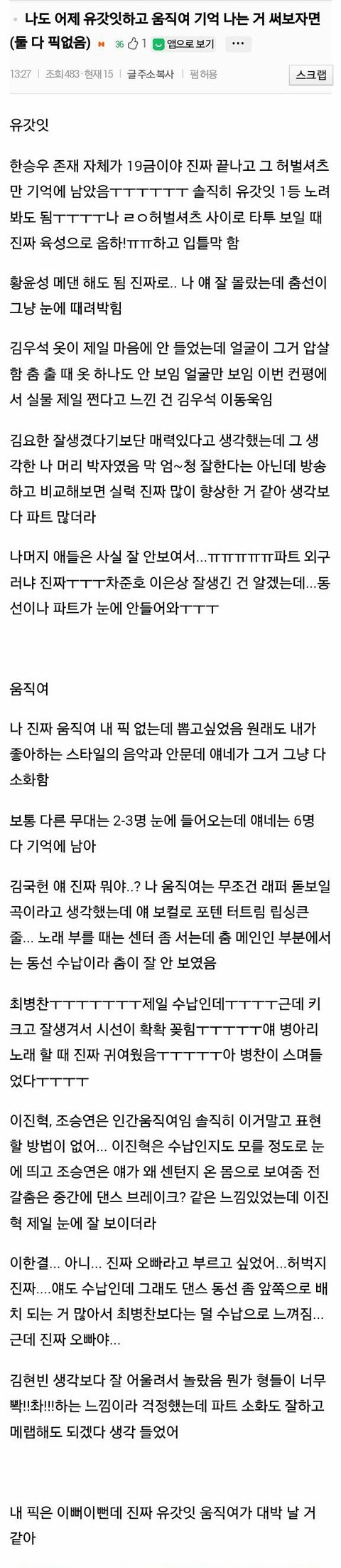 (펌) 유갓잇, 움직여 방청후기