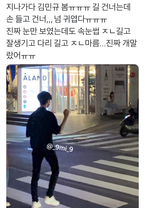김민규 오늘자 목격담인데 횡단보도 손 들고 건넘 ㅋㅋㅋㅋㅋㅋㅋㅋㅋㅋㅋㅋㅋㅋㅋㅋㅋㅋㅋㅋ