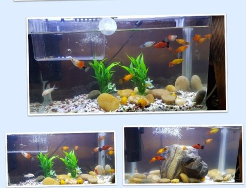 처음에 물고기 몇마리에 어항한개를 선물했습니다.