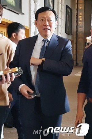 (사진 설명) 신동빈 롯데 회장이 30일 용산구 한남동 그랜드하얏트 호텔에서 열리는 트럼프 대통령과 한국 경제인 간담회에 참석하고 있다. /사진=머니투데이DB, 뉴스1