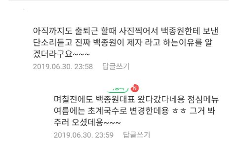 백종원이 여름 메뉴까지 봐줬다네요