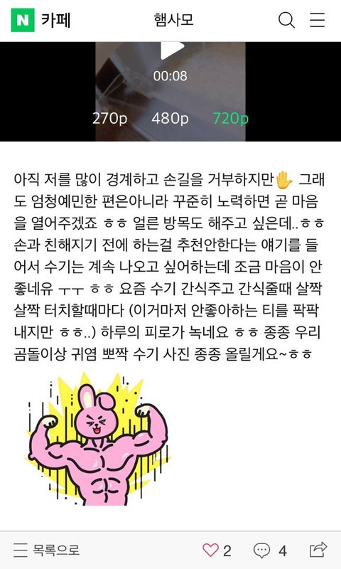 진짜 글 쓴 거 볼 때마다 동물을 정말 사랑하고 아끼는 게 느껴져서 더 이뻐 보이는 협이ㅎㅎㅎ