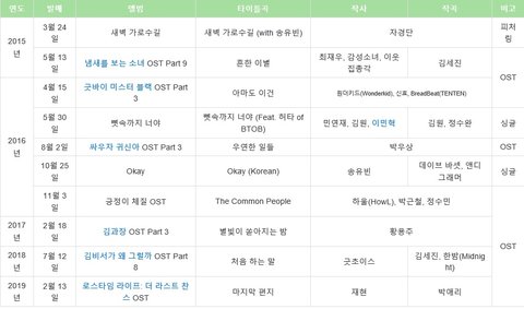 일단 이렇게 유빈이는 OST도 많이 냈다는거 ㅠㅠㅠ 열심히 살았어