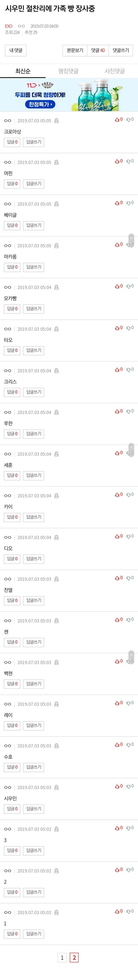 남들 다 자는 새벽에 지혼자 댓 도배해놨네 한심
