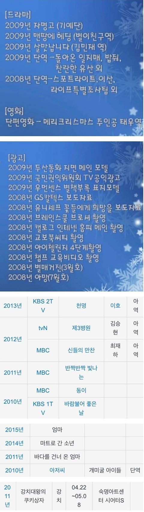 - 단편영화 '바다를 건너 온 엄마'(2011) 주연