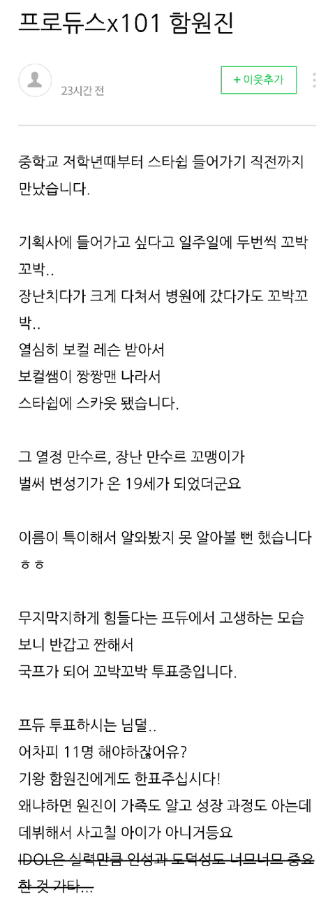 함원진 가르쳐준 보컬 선생님이 쓰신 글