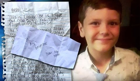 이에 랜든의 엄마는 랜든이 자폐증을 가지고 있으며, 불안해하며 언제 도착하냐고 계속해서 물을 수도 있다는 설명을 담은 쪽지와 함께 10달러를 함께 넣었습니다. 랜든의 옆에 앉아서 가준 승객에게 미안함과 감사함을 전하고 싶었던 것이지요.