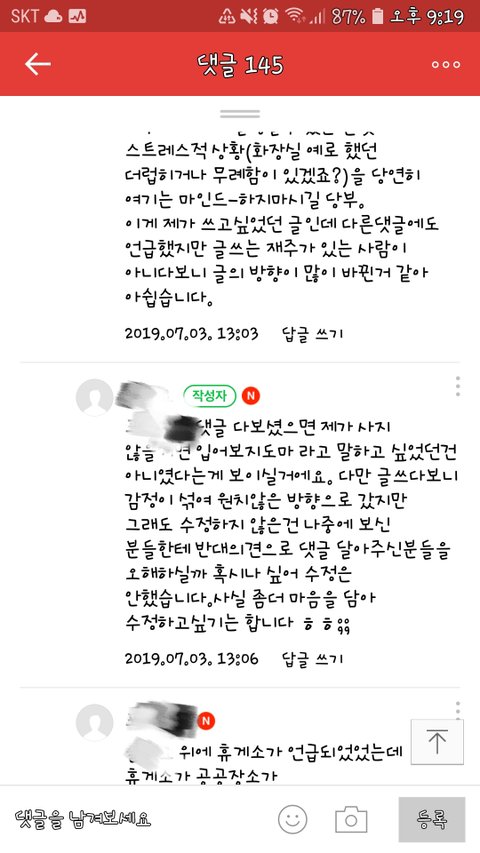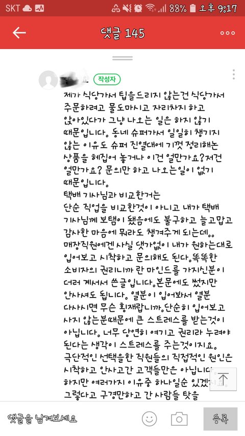 그게 당연한게 아니라는둥 그런 글이 올라옴.