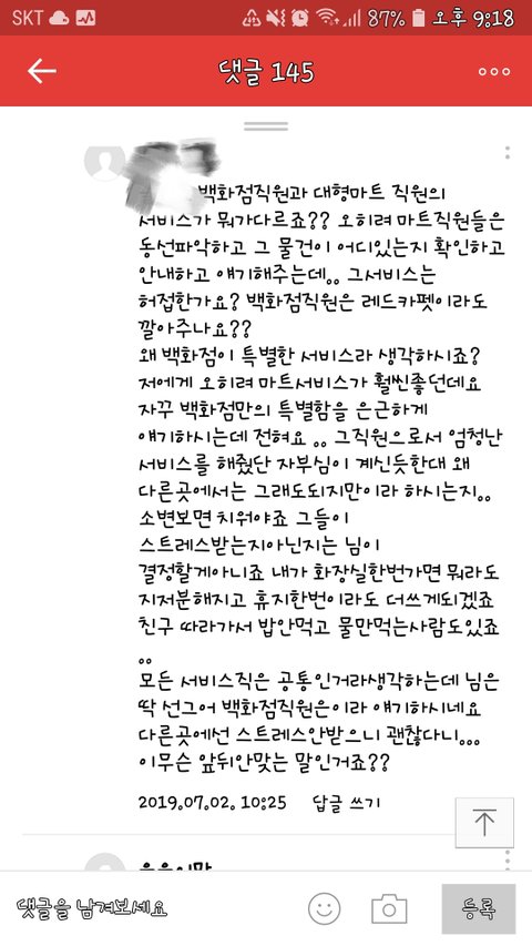 근데 그 커뮤니티에 판매직했던 애엄마가 있었는지