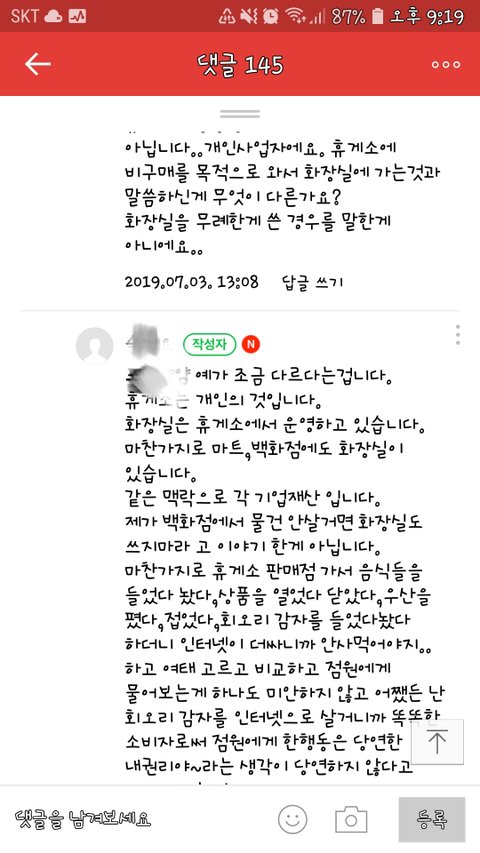 왠 휴게소 화장실 써라 말아라 하는 비유를 대는