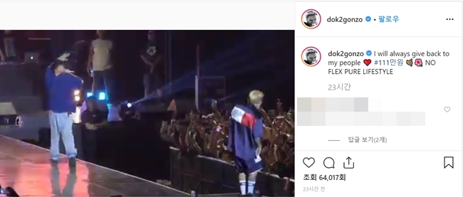 도끼는 지난 23일 자신의 인스타그램을 통해 “I will always give back to my people(나는 내 사람들에게 항상 돌려준다)”이라는 글과 함께 ‘#111만원’이라는 해시태그를 게재했다.