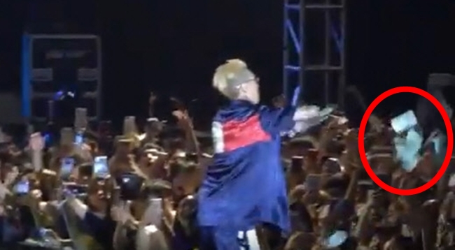 그가 공개한 영상에서는 빈지노의 ‘boogie on&on 노래가 흘러나왔다. 당시 빈지노와 함께 무대를 진행하던 도끼는 주머니에 손을 넣었다. 그리고는 현금 뭉치를 꺼내 들어 관객들에게 뿌리기 시작했다.