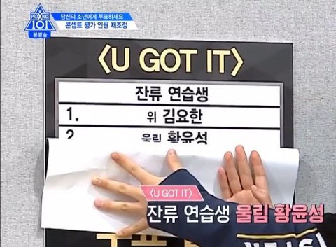 연습생 자체 투표 결과로 윤성이는 2위로 잔류에 성공했어!!!!!