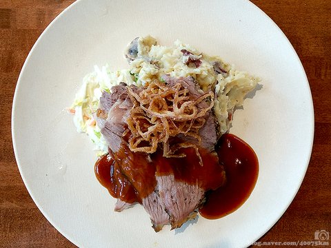 보통은 질겨서 기피되는 브리스켓(양지머리)도 오랜 시간 간을 하고 바베큐 조리를 하면 이렇게 분위기부터가 다른 음식이 됩니다.