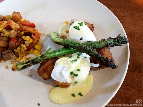 그렇다고 맨날 똑같은 에그 베네딕트만 내놓을 수는 없으니 오만가지 베네딕트 변형 버전이 다 나옵니다.