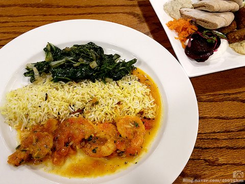바스마티 쌀과 각종 향신료로 양념한 새우 요리입니다. 중동 지역 음식과의 유일한 교차점이라면 예전에 이집트 여행 갔을 때 뿐인지라 중동 음식만 먹으면 이집트 갔던 기억이 떠오르네요.
