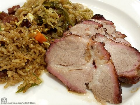 광동식 돼지 요리. 돼지고기 로스트인데 중국식으로 간장과 식초, 설탕, 팔각 등을 이용해서 조리했습니다.