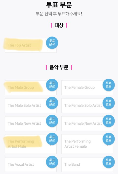 ❗️음악부문 (남자그룹상, 남자 퍼포먼스상) 두개 부문 노미
