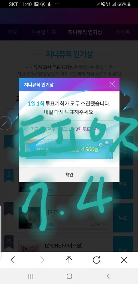 탑아티스트하고 지니뮤직 인기상 두개더하는거네