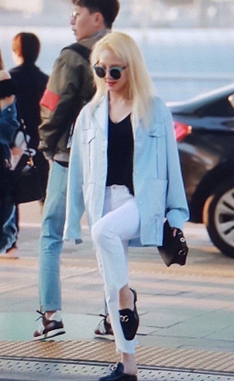 협찬받은 신발을 가지런히 보이게 걷고 있는 효연의 모습이다.