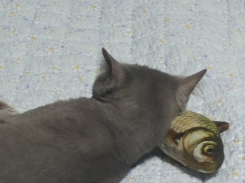 잠시 한눈을 판 사이에 몽이가 캣닢 인형을 베개삼아 자는 모습을 뙇!! 도촬 성고~옹