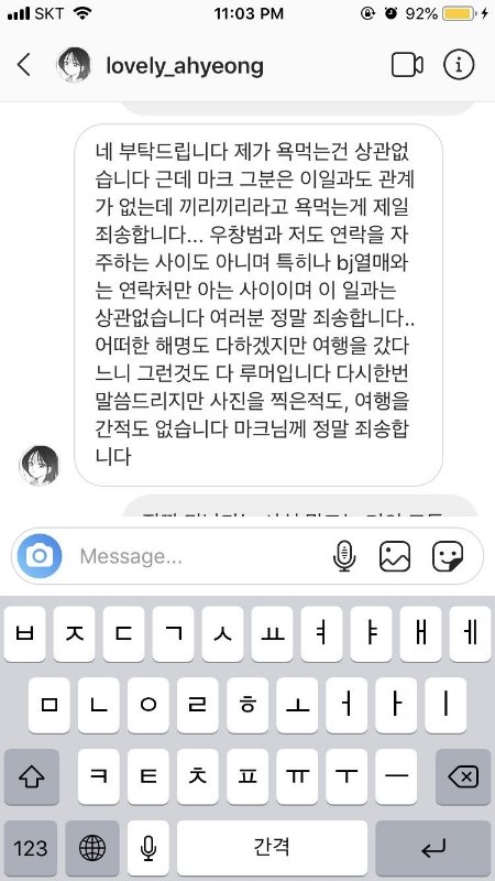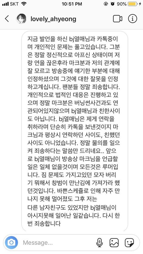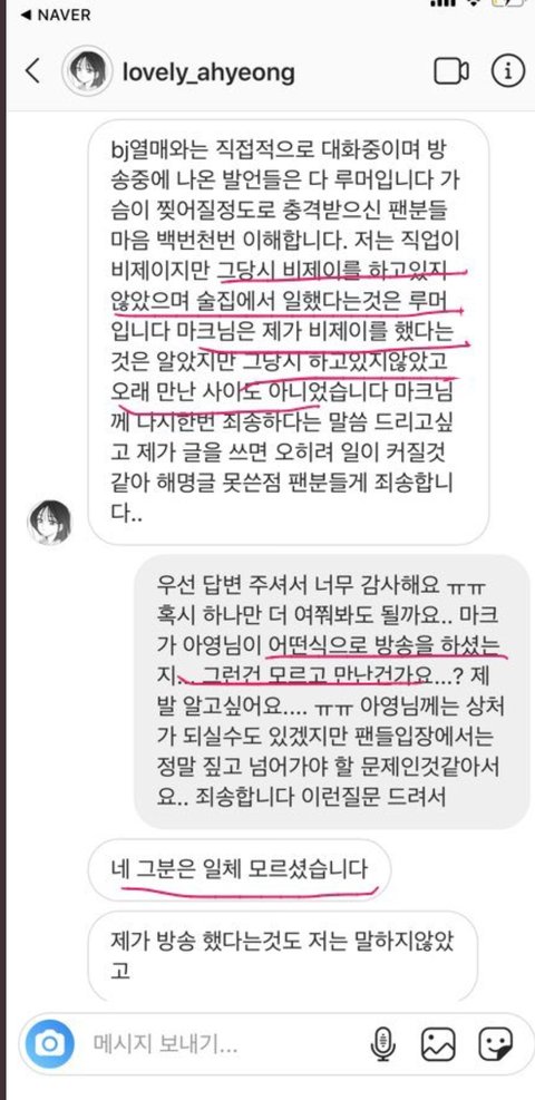 2. 마크랑 BJ 아영이랑 정확하게 사귀는 사이라고 정의할 만큼 가깝지는 않았음.