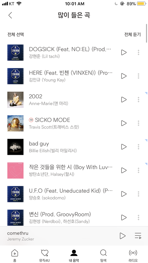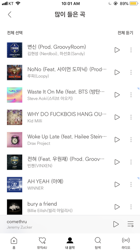 ++) 그리고 나 머글 코스프레라고 얘기하는 사람들이 있어서 벅스 많이 들은 곡 인증해주러 왔어. 이건 조작 불가능하니까 조작충이라고 얘기나오면 현실부정하는 거 인증하는 꼴 밖에 안되니까 파이팅해.