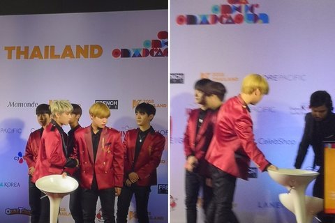 해외콘했을때 물병이 몇개 쓰러져있었는데 관객석으로 물 흐르고 있어서 물병 세우고 바닥에 흘린 물 수건으로 닦는거임